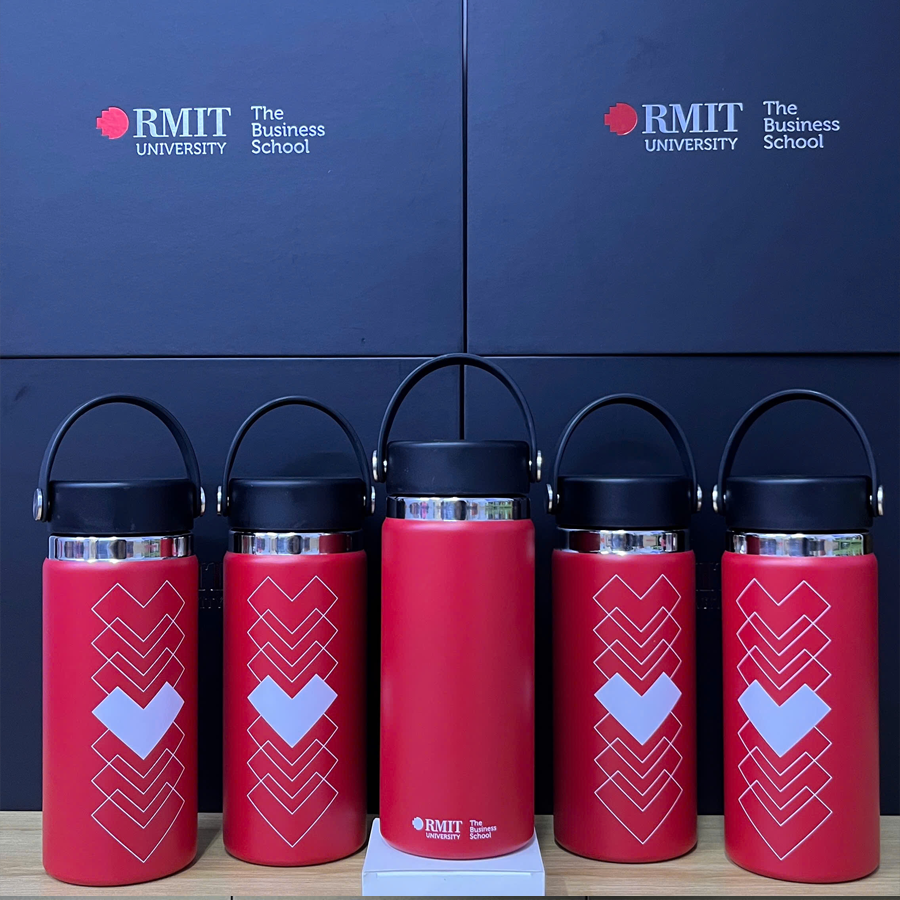 • Bình giữ nhiệt in logo RMIT: Thiết kế năng động, hiện đại, giữ nhiệt tốt – phù hợp với sinh viên năng động và thường xuyên di chuyển.