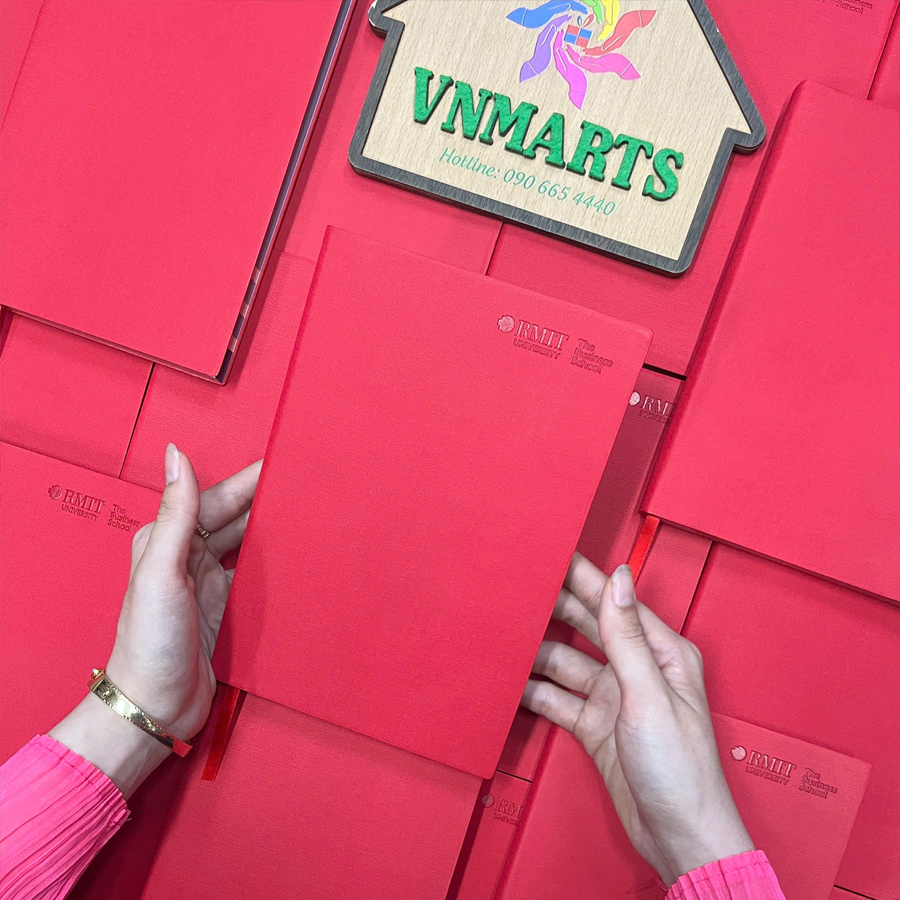 • Sổ tay cao cấp: Bìa cứng, màu đỏ nổi bật, phù hợp để ghi chép bài học, mục tiêu và kế hoạch cá nhân.